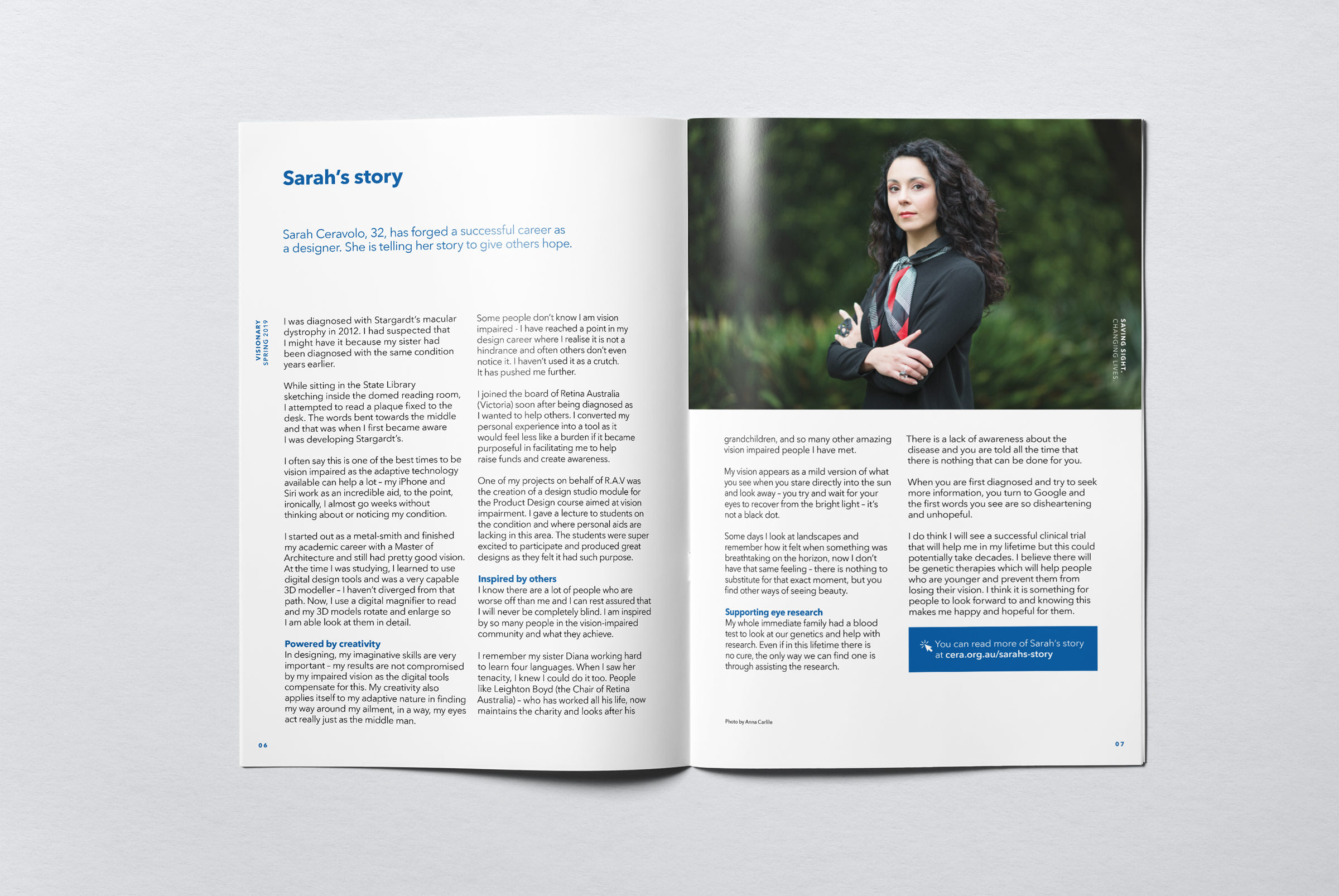 Partnering with this client for many years has allowed us to develop a strong visual style and a deep understanding of their operations and teams. Going behind closed doors with our cameras, we’ve been able to hero the staff who do amazing work in research labs, practice rooms and people’s homes. We’ve also been privileged to document the impact of CERA’s work on people with vision loss or blindness.
