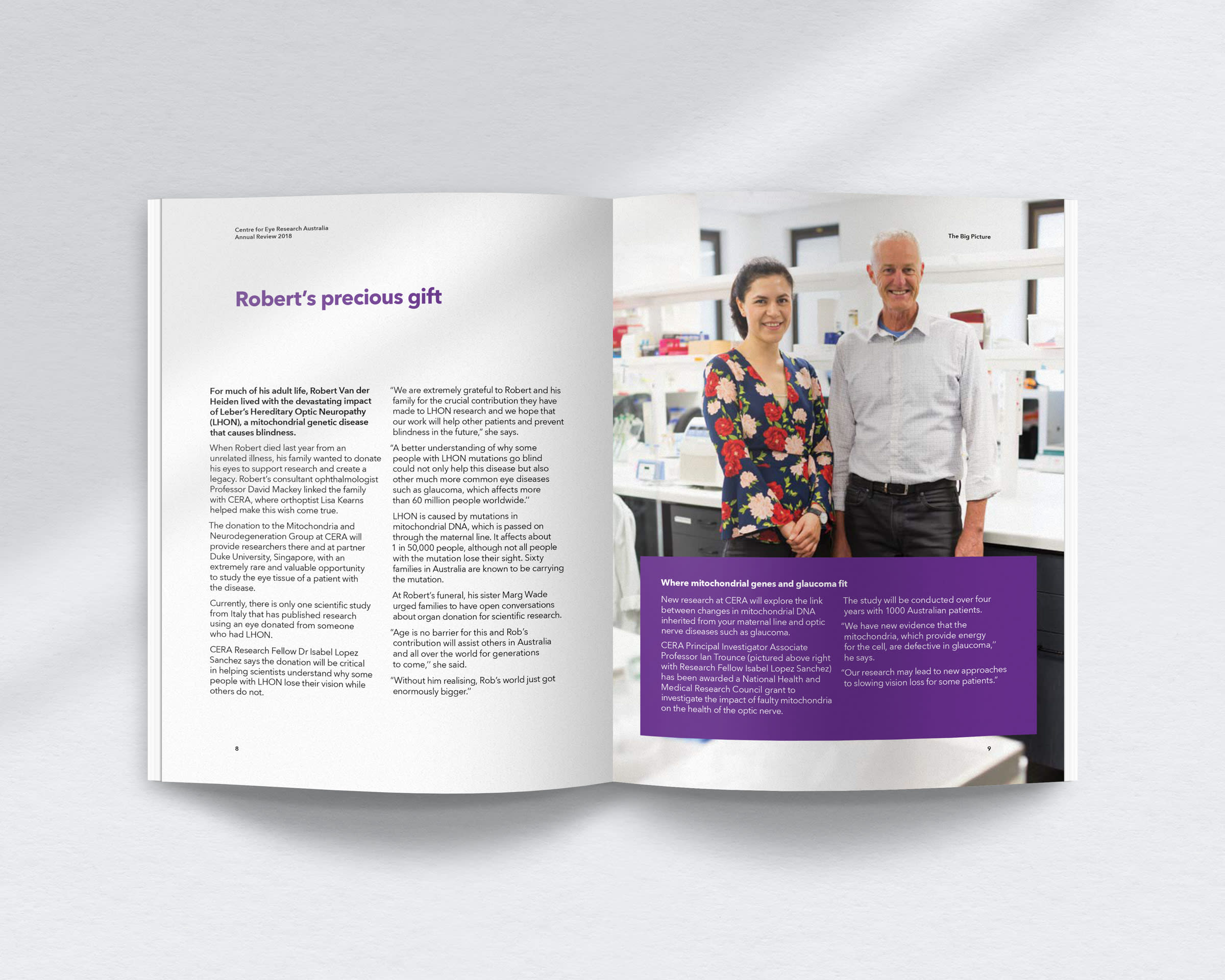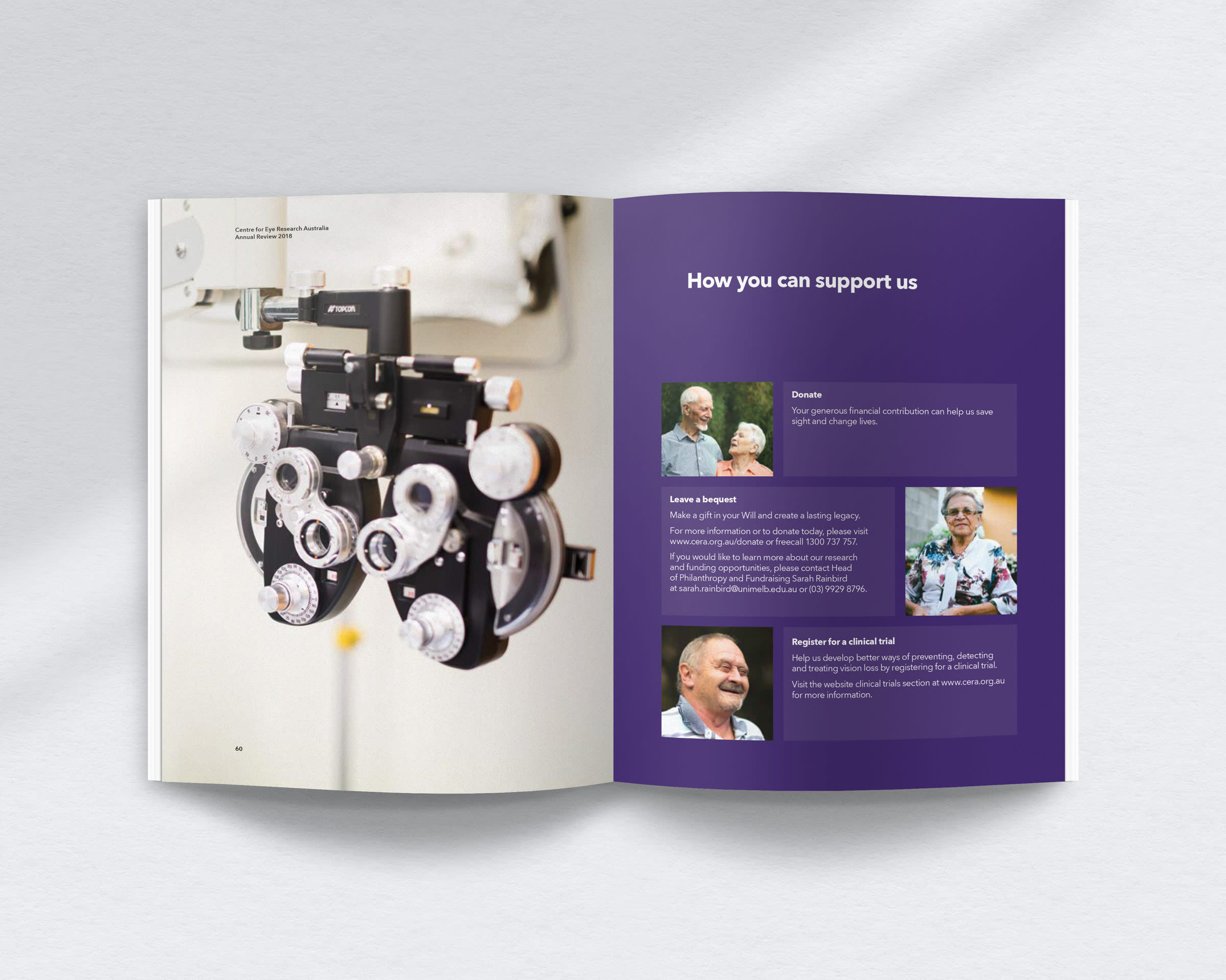 The Centre for Eye Research Australia (CERA) is an independent institute committed to conducting eye research with real-life impact, and finding ways to prevent people from going blind.